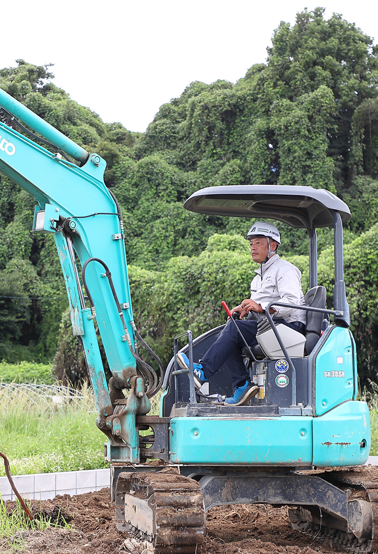 主な業務内容は建物の基礎工事や宅地の造成工事、建物まわりをフェンスで囲うの外構工事などです。 確かな技術を持つエキスパートがチームワークを発揮して仕事をしています。
